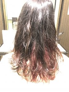 内側だけブリーチさせてもらい、ピンクよりのムラサキを入れさせていただきました!!