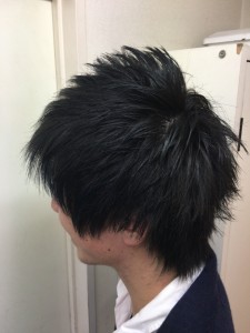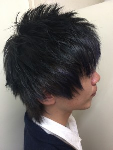 左サイドは黒で右サイドから襟足にかけてはブリーチで脱色してからの紫をオンカラー!