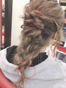 サイドから捻った毛をまとめるのに一つ
