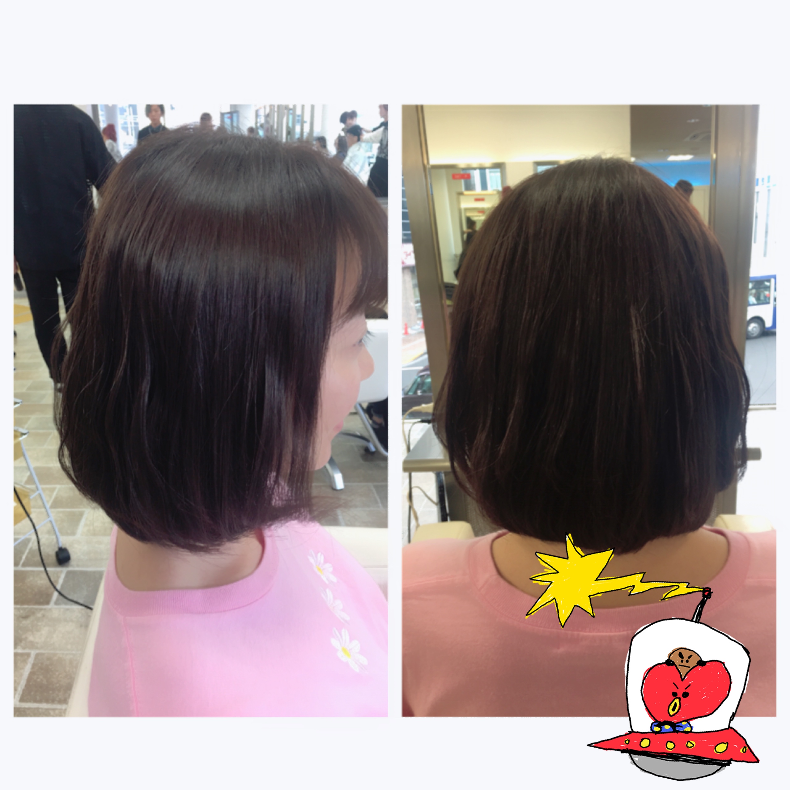 こんにちは〜〜 タナカです(^ν^) 先日来てくれたお客様です^ ^ カットして最後にアイロンで 軽くウェーブを出しました(=´∀`) 動きがでてとってもかわいいです♡ ありがとうございました〜〜!!