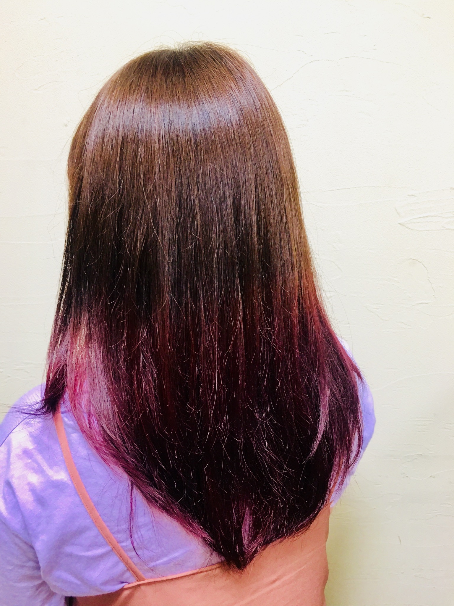 こんにちは! 今日は8日ぶりの猛暑日みたいですね! ちょっと外に出るだけで バテバテです(´Д` ) 8月のスタッフのシフト表です。 ご予約はお電話で受け付けております! ブリーチカラーなどお時間のかかるメニューはお早めにお電話くださいませ! こちらの方は毛先に バイオレットピンクを入れました☆ 赤み系のお色であれば、ブリーチ1回でも鮮やかなお色がだせます。 ぜひ挑戦してみてください(^^)