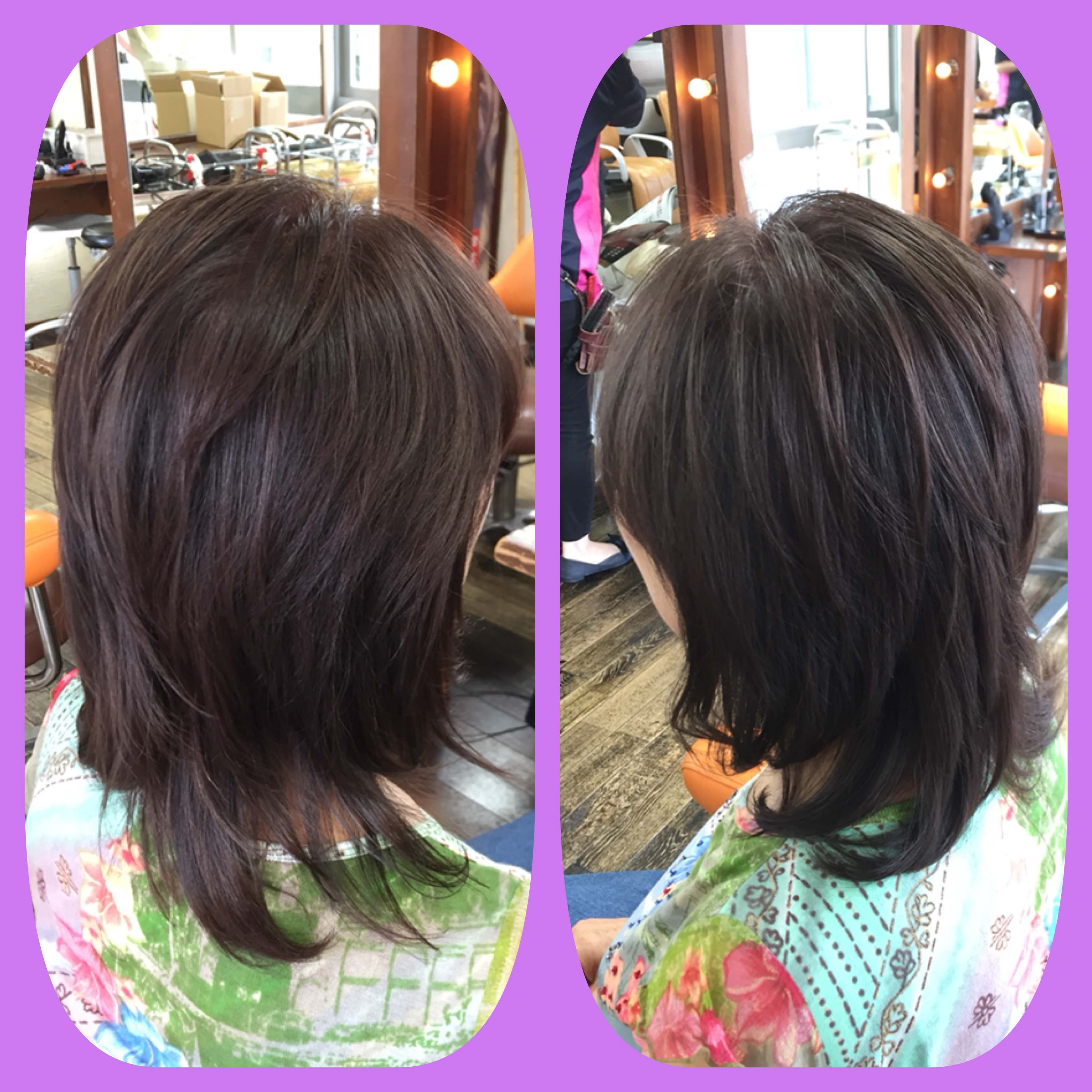 ライラックアッシュをベースにグレイヘアーもしっかり染めたいと思ったので、少しグレイカラーを混ぜました。