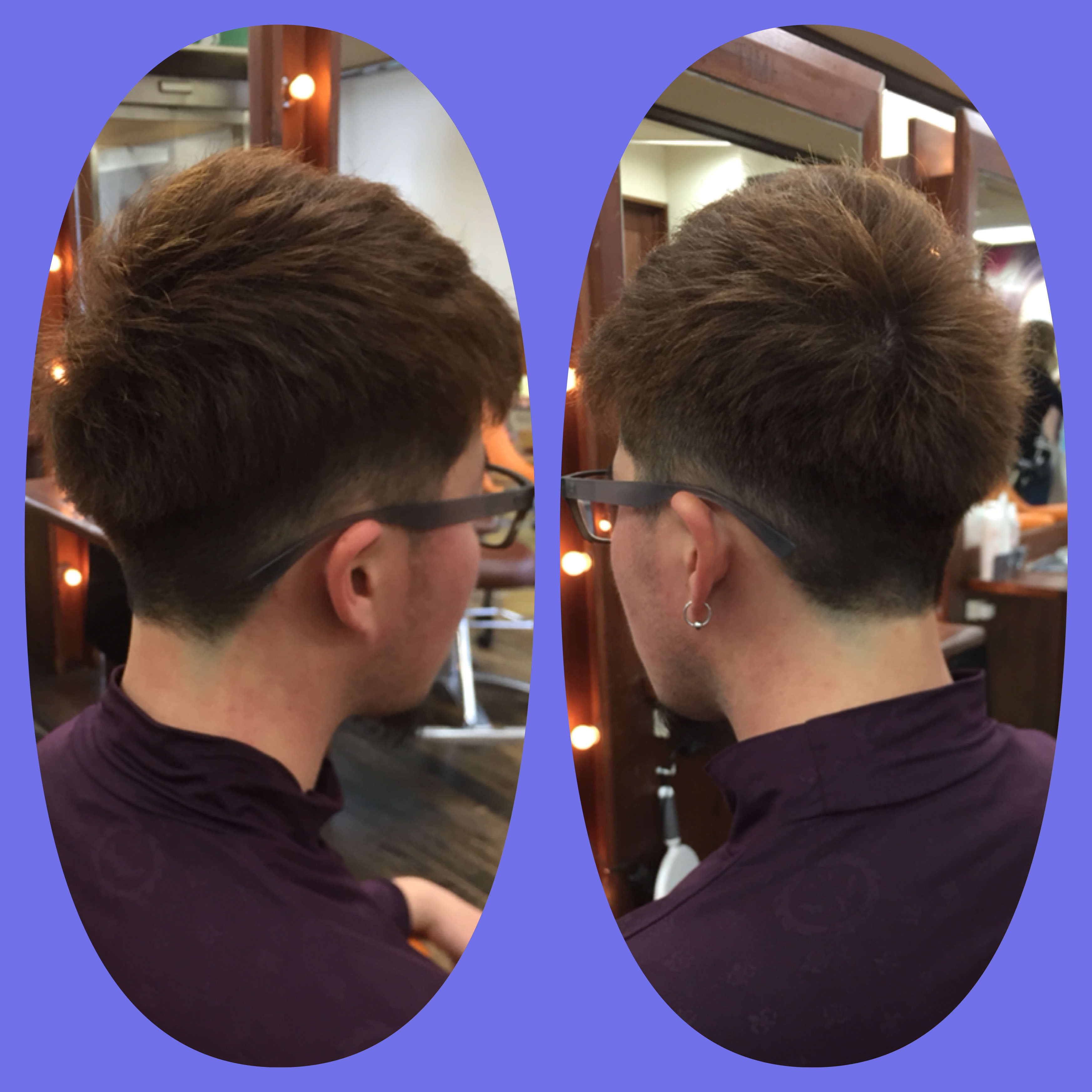 横はツーブロックで襟足は刈り上げです。