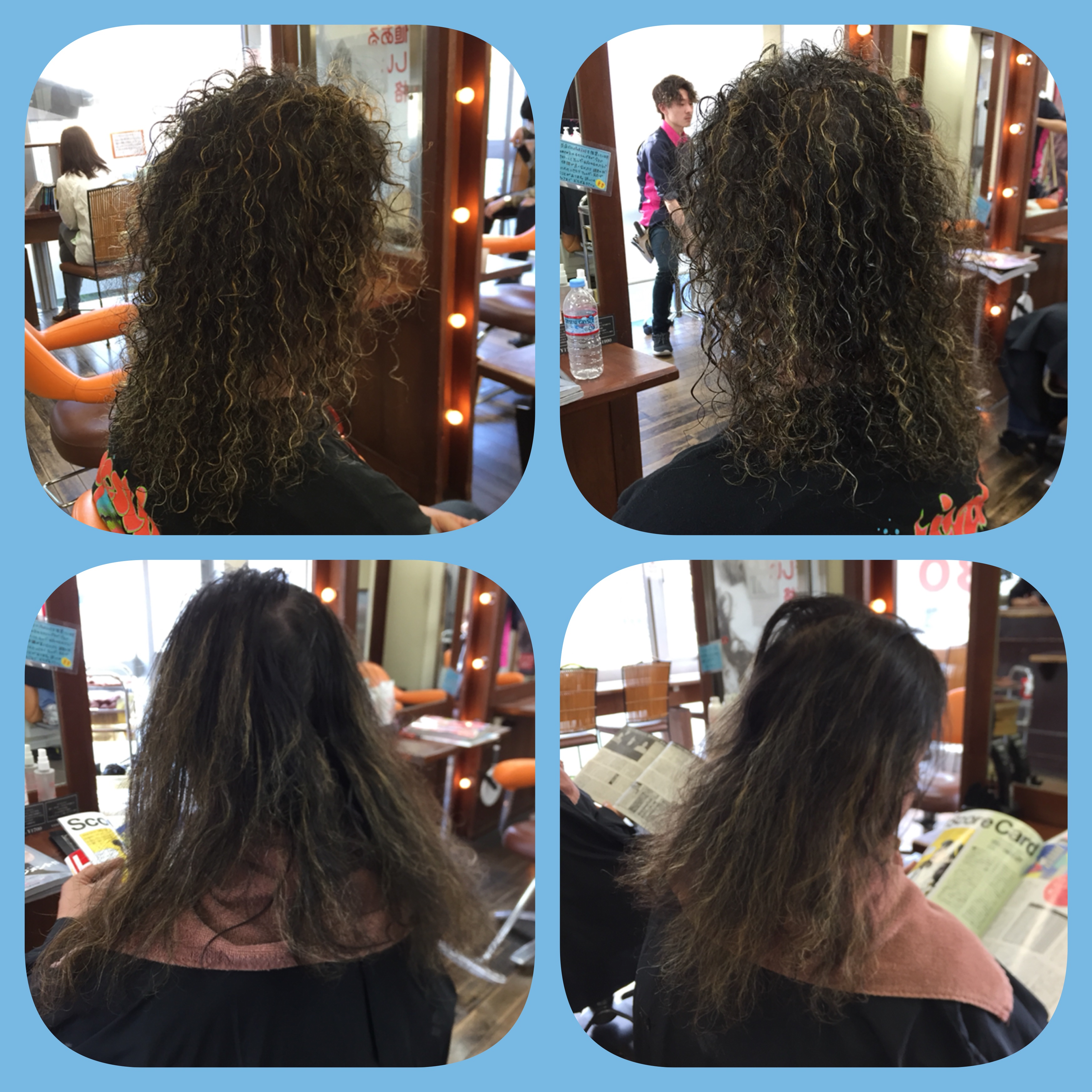 パーマはしっかりかけて、ハイライトは細めで全体的に入れました。
