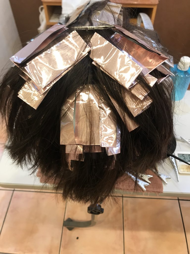 55枚のホイルを1つのウィッグに入れていく作業なのですが