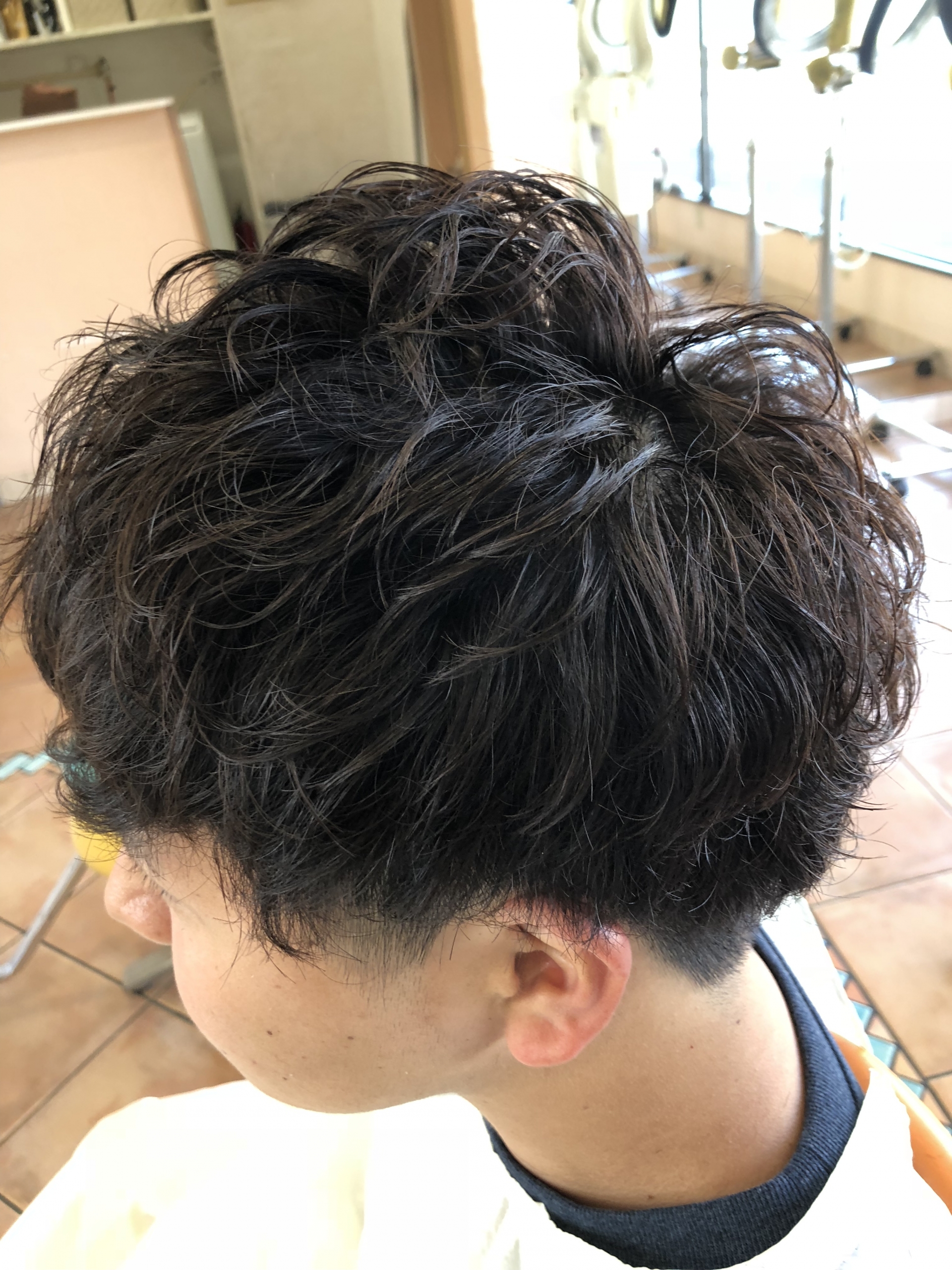 パーマかける前にショートマッシュベースでカットをしました^ – ^