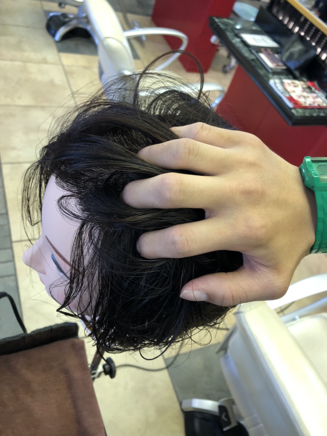自分で染めたらしいカラーのムラをカバーするためと、