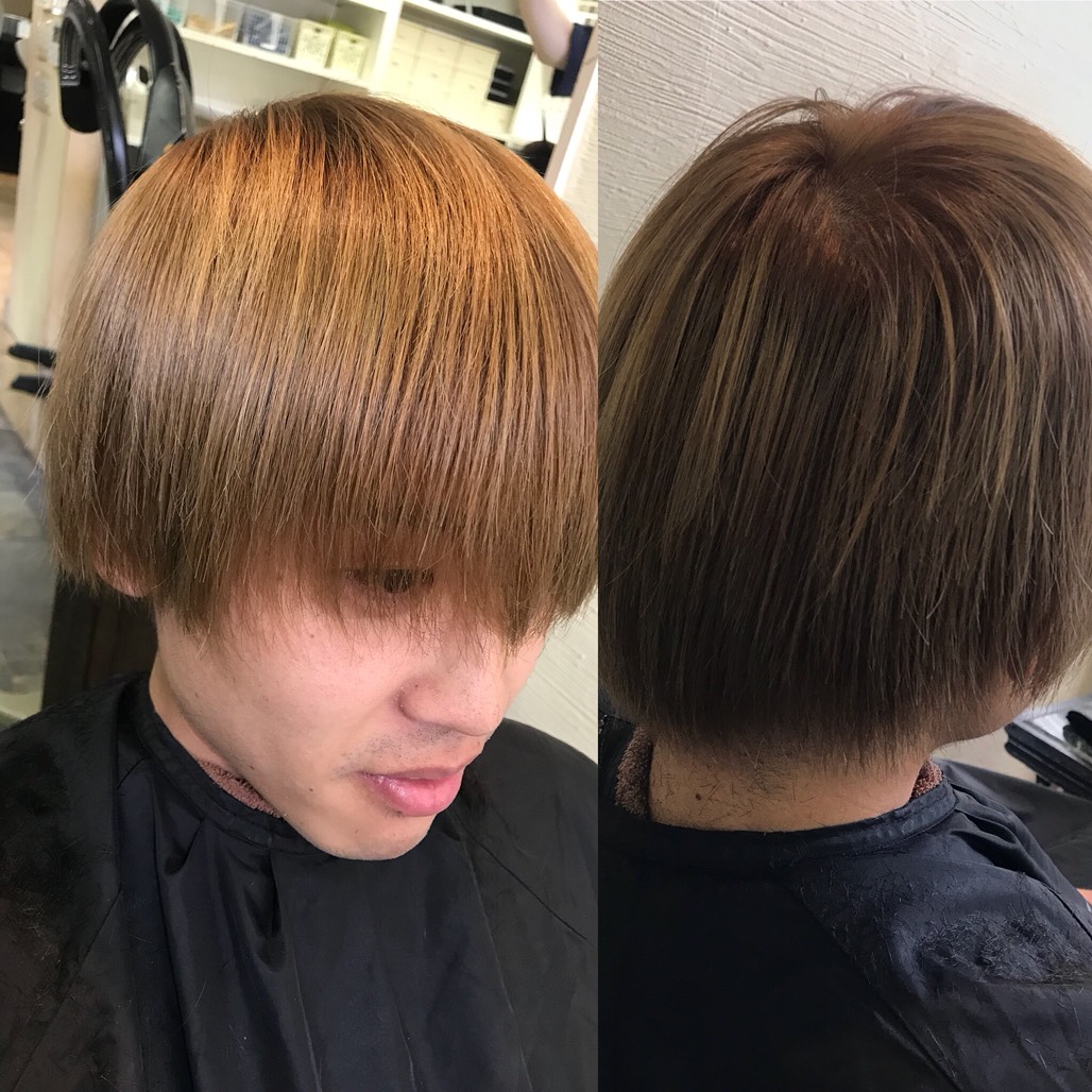 髪も伸び伸びで、黄色っぽくなってたのを、