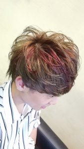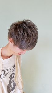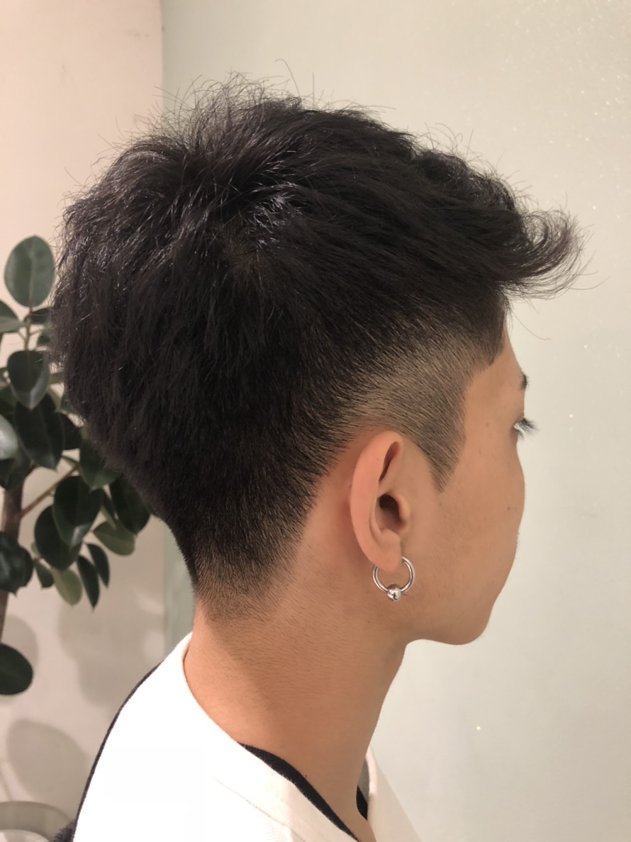 周りを短く刈り上げて、トップと前髪にパーマをかけて動きをつけてみました^ – ^